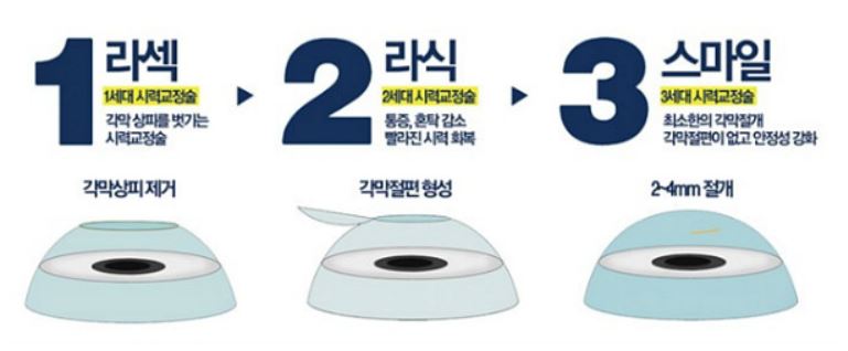 가격만큼이나 다른 회복기간, 적용 대상을 알아보고 적합한 과정을 찾아야 했어요.회복기간 단축으로 선호도가 높은 교정방식은 단연 라식이었는데요.라식은 각막의 절편을 만들어 젖힌 후 실질부를 조사하고 절편을 닫아 시력을 교정하는 방법이었어요.그러나 절편을 만드는 과정에 있어 절삭의 시작 지점이 다소 깊기 때문에 각막 잔여량 미확보의 우려가 존재한다면 적용이 어려워질 수 있었어요.