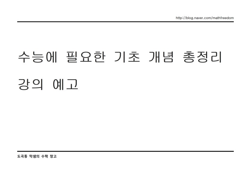 안녕하세요. 막삼입니다. 제목은 대학입시에 꼭 필요한 기본 개념을 요약한 것이지만, 이 파일의 내용은 중학교, 초등학생, 고등학생에게도 꼭 알아야 할 내용이다. 4~5학년 학생들이 쉽게 성적이 오르지 않는 이유는 1번, 1번입니다. 2. 선택과목의 개념을 몰라서가 아닙니다. 기본 개념이 약해서 문제에 필요한 내용을 수식으로 바꾸지 못해서 점수가 오르지 않는 경우가 많습니다. 그래서 기본 개념을 탄탄하게 정리할 수 있는 콘텐츠를 준비하고 있습니다. 오늘은 그에 앞서 기본 개념을 요약한 파일을 먼저 공개하겠습니다. 잘 읽어보시고 모르는 정보는 꼭 정리하시기 바랍니다. 곧 설명강의도 업로드하겠습니다. 최선을 다하길 바랍니다.