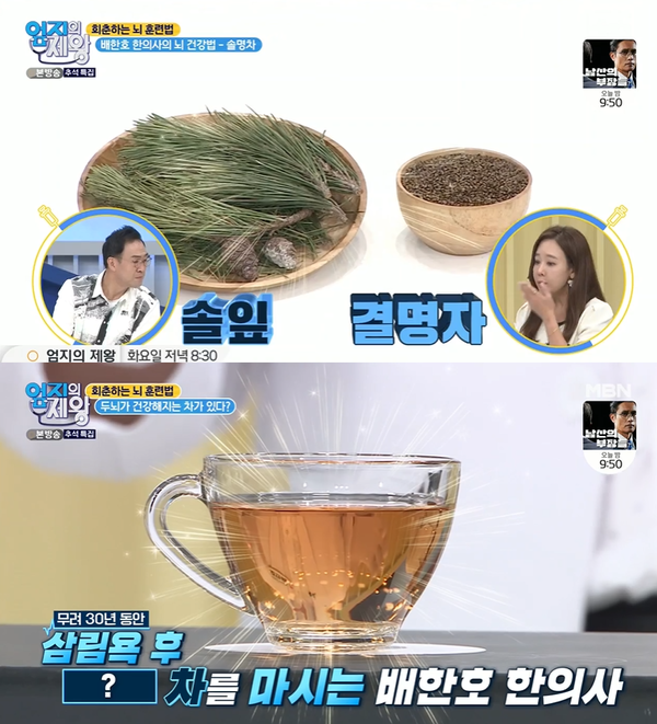 엄지의제왕452회 회춘하는뇌 훈련법을 주제로 두뇌가건강해지는 솔잎&결명자차한의사 배한호 솔명차 만들기가소개되었는데 레시피를 살펴본다