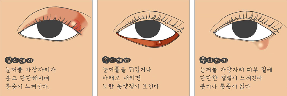 눈 주위가 심하게 붓고 쑤시기 시작하면 많은 사람들이 의심하는 질환이 바로 눈다래끼다. 눈은 외부환경에 직접적으로 노출되는 신체기관으로, 면역력이 저하되면 세균의 침입이 자주 일어나는 곳 중 하나이므로 눈을 자주 비비거나 만지는 습관이 있는 분이라면 눈 관리를 자제해야 합니다. 그래서 여름 동안. 여름철에 발생하는 안질환으로 연중 내내 발생할 수 있으나 여름에 더 쉽게 발생합니다.