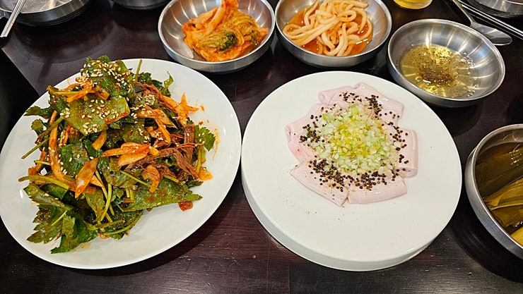 양념샐러드는 서비스로 제공되기 때문에 사실 한 번도 먹어본 적이 없는 메뉴에요. 찌개나 양념이 먼저 나오면 술을 붓고 따뜻한 메뉴가 나온다.