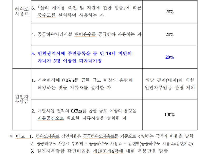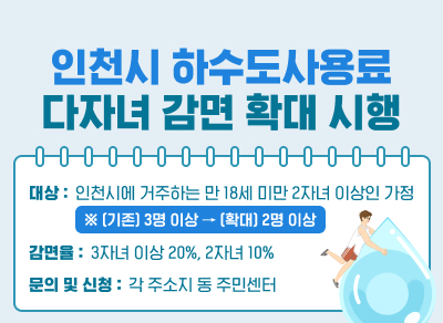 인천 다자녀 혜택, 두 아이 상하수도 요금 감면은 얼마나 되나요?