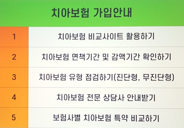 실용적인 어린이보험은 임팀장에게 문의하세요 (클릭!!) 치아보험은 치과 진료비 부담을 줄여주는 보험입니다. 치아보험은 충치, 잇몸질환 등 다양한 질병과 부상에 대한 치료 비용을 보장합니다. 특약을 맺으면 임플란트, 틀니, 브릿지 등 고가의 보철치료까지 보장받을 수 있어 많은 분들이 치과보험에 가입하고 계십니다. 하지만 어떤 제품을 선택해야 할지 알기가 어렵습니다. 그래서 이번에는 각 회사의 대표상품을 비교 분석하여 나에게 딱 맞는 상품을 찾아보도록 하겠습니다. 치과 치료비가 왜 이렇게 비싼가요? 치과에는 보장되지 않는 항목이 많기 때문입니다. 국민건강보험공단에서 지원하는 보장항목(스케일링 등) 외에 비보장항목(근관치료, 크라운, 인레이/온레이, 레진, 발치, 치아교정 등)은 환자가 직접 진료를 받아야 하기 때문에 가격이 비싸다. 비용의 100%를 지불합니다. 20대, 30대, 40대 분들을 위한 치아보험 추천해주세요. 연령별로 적합한 제품이 다르기 때문에 연령별로 설명하겠습니다. 첫째, 20대에게 추천하는 적합한 회사가 있다. 젊기 때문에 상대적으로 낮은 보험료로 높은 보장을 받을 수 있다는 장점이 있습니다. 다음으로 30대 분들은 현시점에서 다른 곳을 추천해 주시는 것이 좋습니다. 특히 어린이 계획의 경우 진단 계획보다 비진단 단순 검토 계획이 더 유리할 수 있습니다. 마지막으로 40대 이상 분들의 경우, 현재 상황에 따라 추천 장소가 달라질 수 있습니다. 추천 장소는 연령, 성별에 따라 다르며, 가입 시점에 따라 적합한 장소도 달라질 수 있습니다. 개별 문의를 주시면 최선의 선택을 하실 수 있도록 도와드리겠습니다. 실용아동보험 팀장에게 문의하세요 (클릭!!)